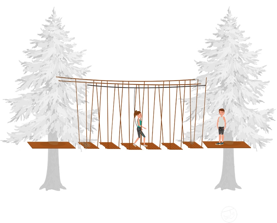 安装在两根钢丝绳上。钢丝绳之间的距离为60厘米。弹弓长200厘米。