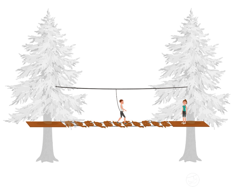 安装在两根钢丝绳上。孔之间的距离为50厘米。