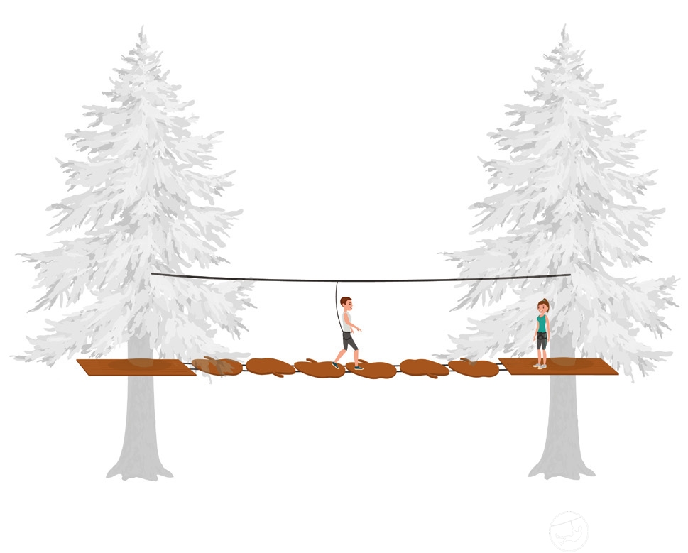 安装在两根钢丝绳上。孔之间的距离为50厘米。