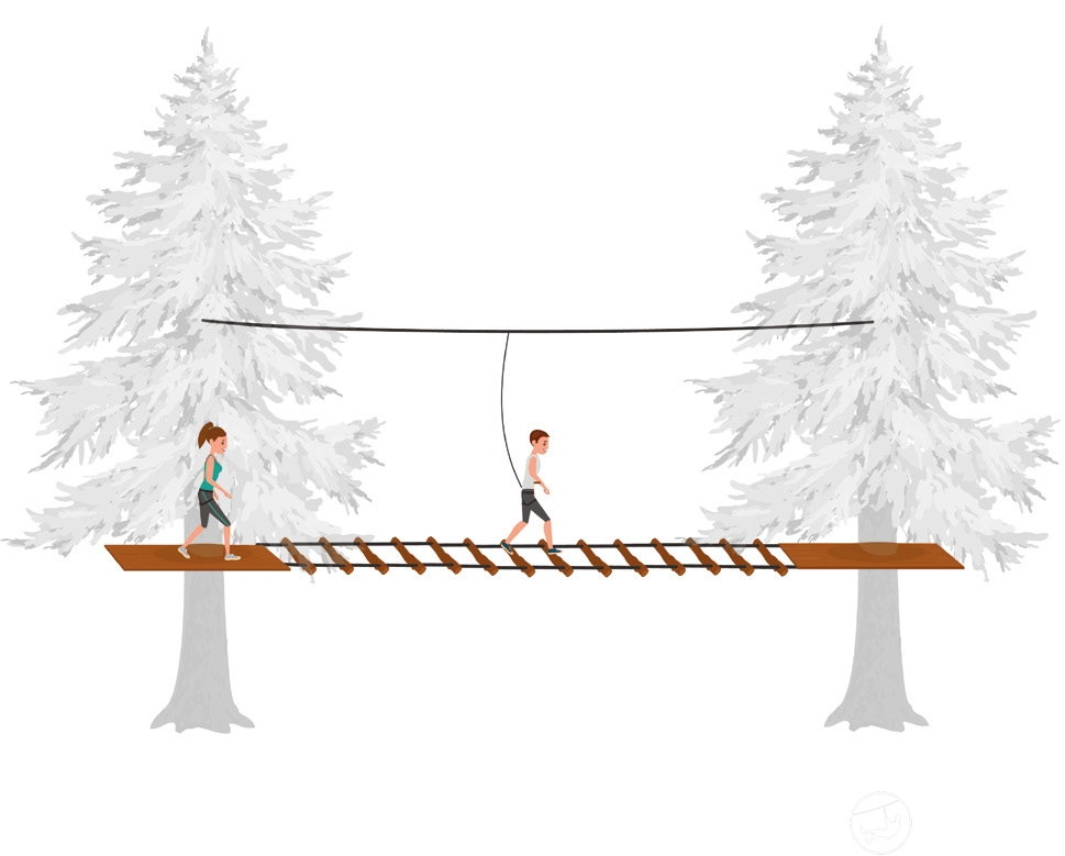 安装在两根钢丝绳上。孔之间的距离为60厘米。