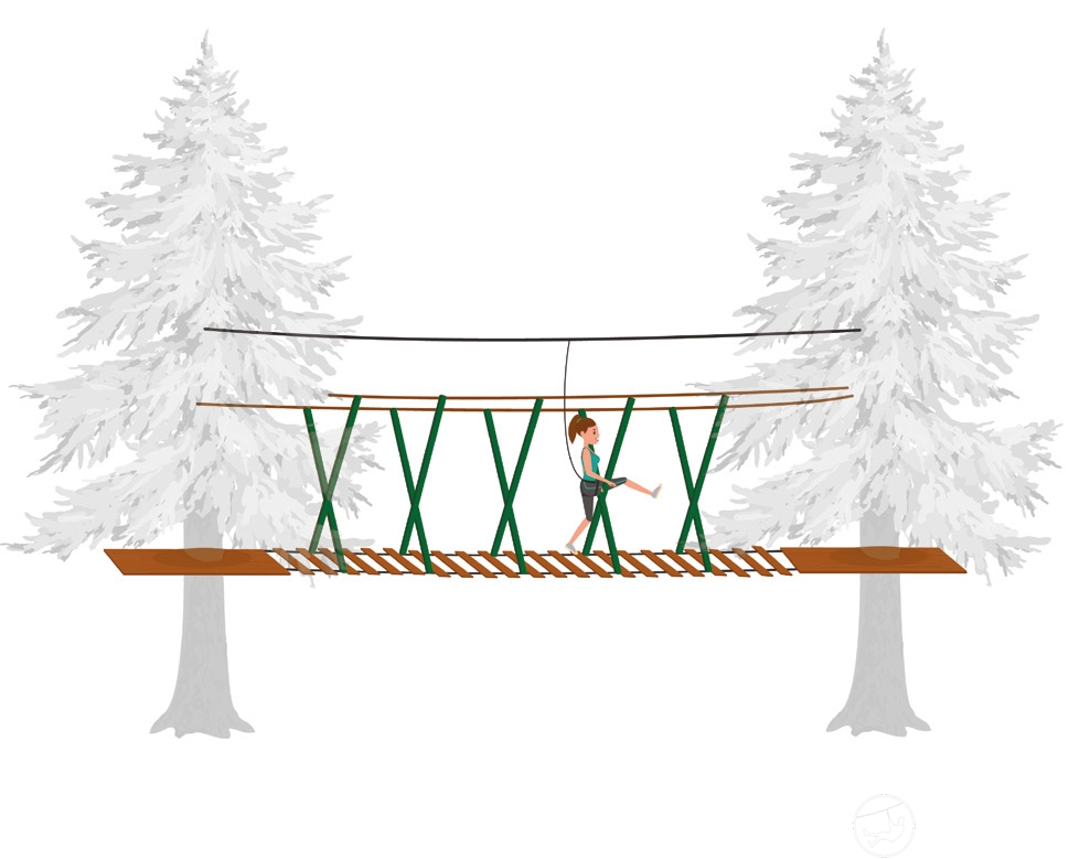 安装在两根钢丝绳上。孔之间的距离为60厘米。床垫安装在两根钢丝绳上。