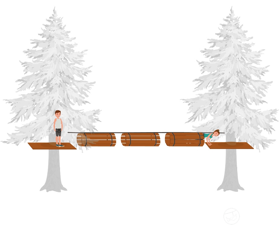 安装在两根钢丝绳上。钢丝绳之间的距离为60厘米。