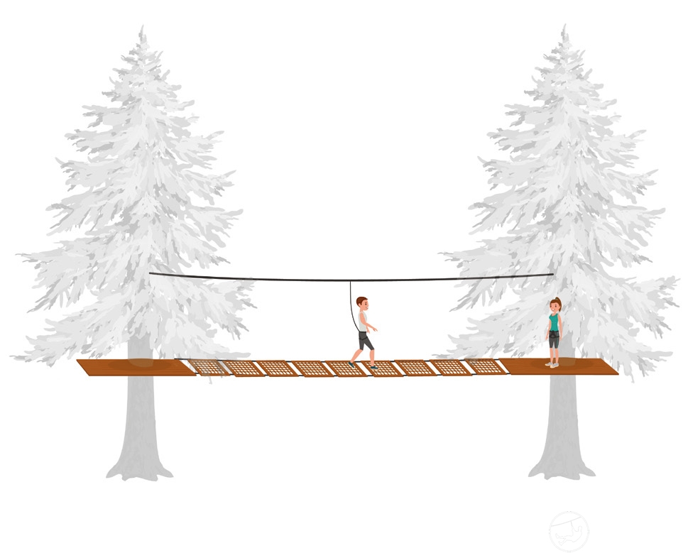 安装在两根钢丝绳上。孔之间的距离为60厘米。