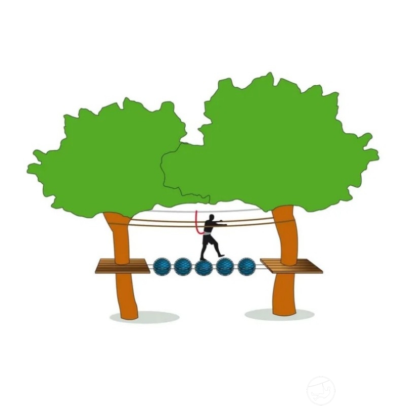 是一种PVC球,包裹在一个饺子形状的行走网中,网角各有一个环。黑色网布由50毫米网布和10毫米缝制绳索制成。每个直径为55厘米的球,提供蓝色或红色两种颜色。 每个意大利饺子必须放置在两根距离为75厘米的平行电缆上。PVC气球是未充气的。