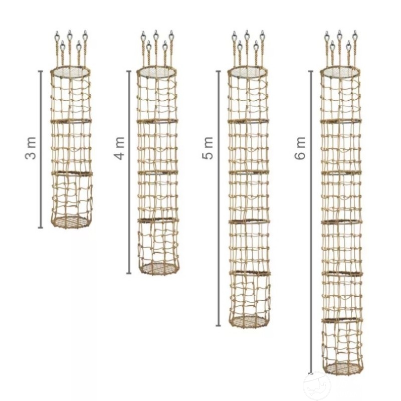 烟囱-Ø800毫米设计采用直径16毫米、250毫米方形网绳。我们提供可定制的产品,采用标准聚丙烯绳或纹理聚丙烯绳。根据您想要的高度,我们每米用半轴承实现。它们采用黑绳设计,网径为100毫米,直径为12毫米,固定在错列行中。