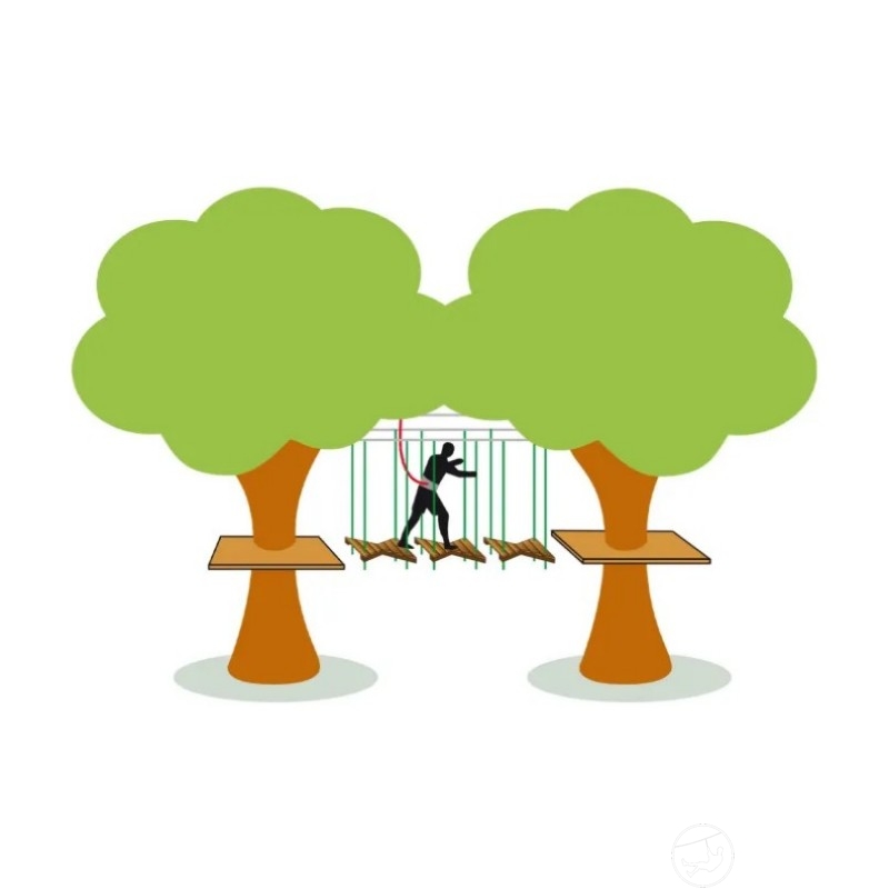 由90毫米木梁和防腐木板制成,适合高空绳索和空中冒险赛道。设计为悬挂式安装,打造一个动态的摆动桥梁。用户在模块轻柔移动时穿过,激发灵活性和平衡。适合在空中冒险路线中变化各种感觉。