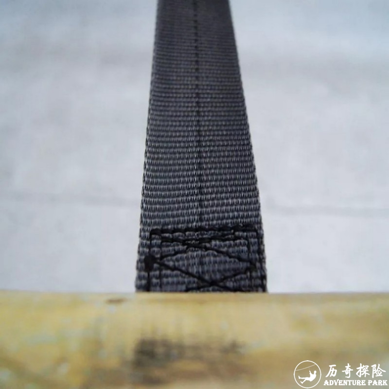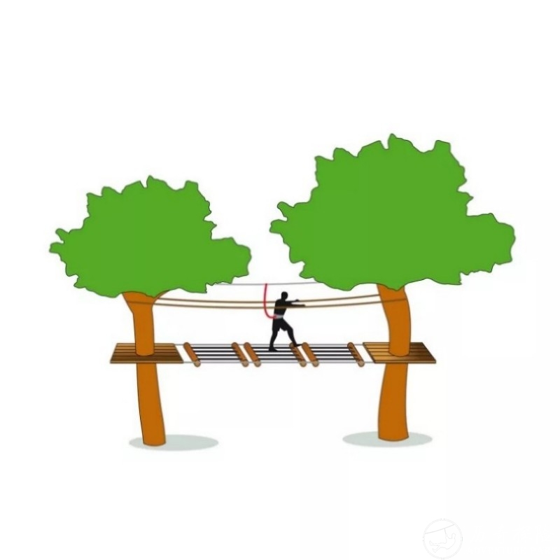 该游戏模块是一个2米的元素,由以下组成:4条宽50毫米的黑色带子,2根直径100毫米的原木,配有直径16毫米的螺纹杆,两端各有两个固定环。带子缝在螺纹杆上,以确保更好的阻力。《移动桥》是一款中等难度的树顶冒险游戏,适合中级课程。桥本质上是通过绑带设计的,使用者需要调整平衡才能跨越桥梁。